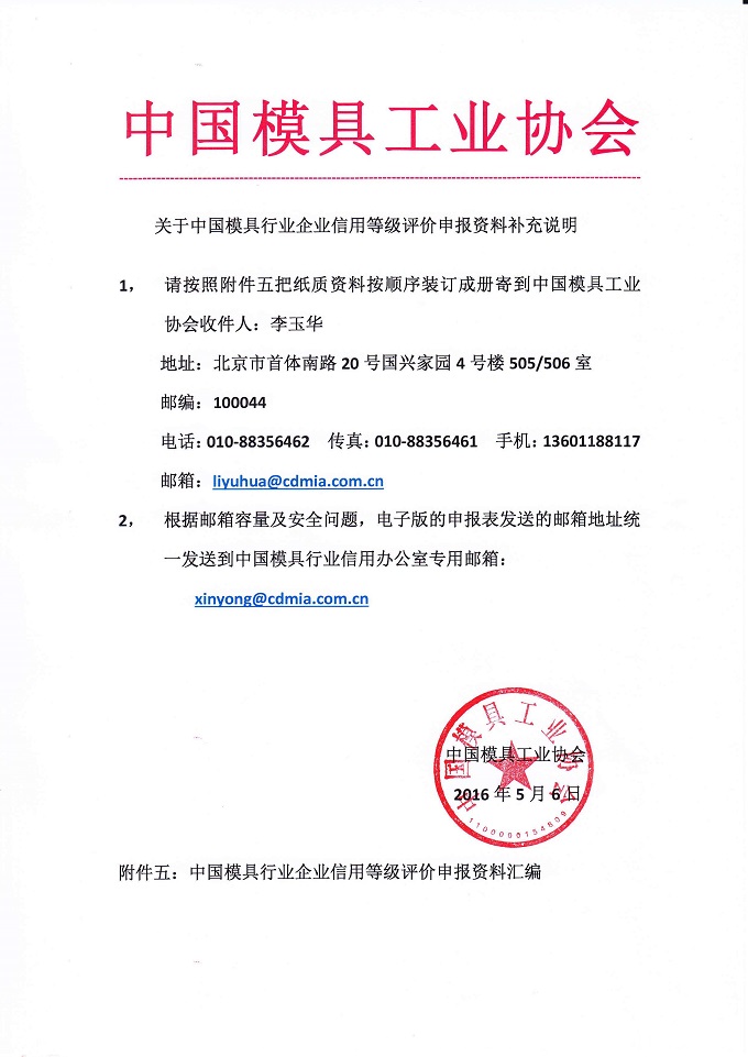 中國模具行業(yè)企業(yè)信用等級評價(jià)申報補充材料與說(shuō)明