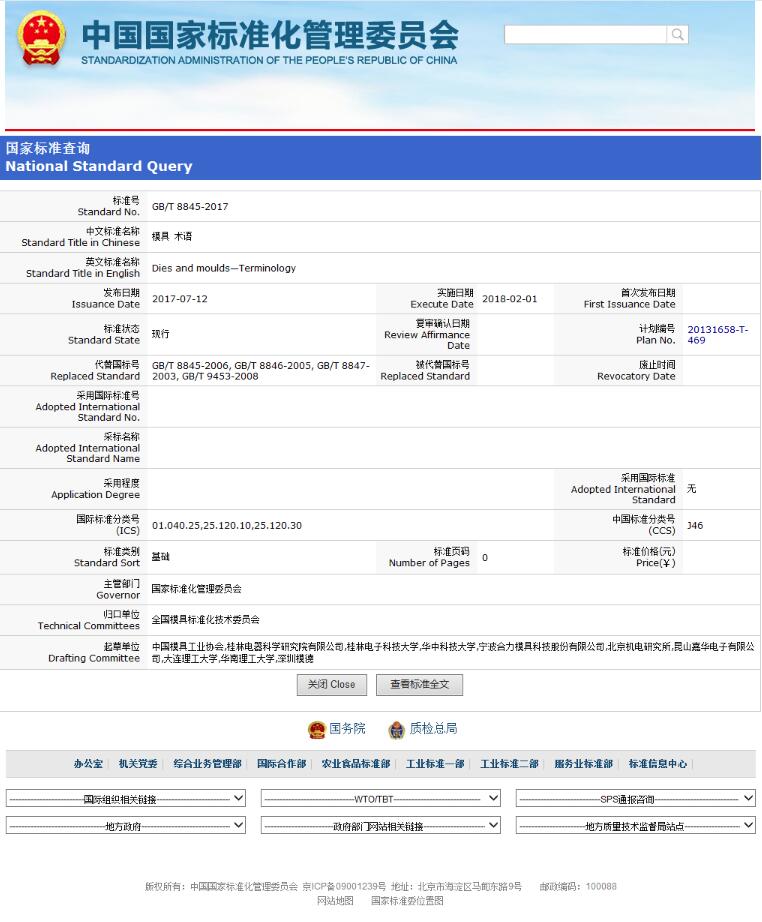 《模具 術(shù)語(yǔ)》GB/T 8845-2017將于2018年2月1日正式實(shí)施