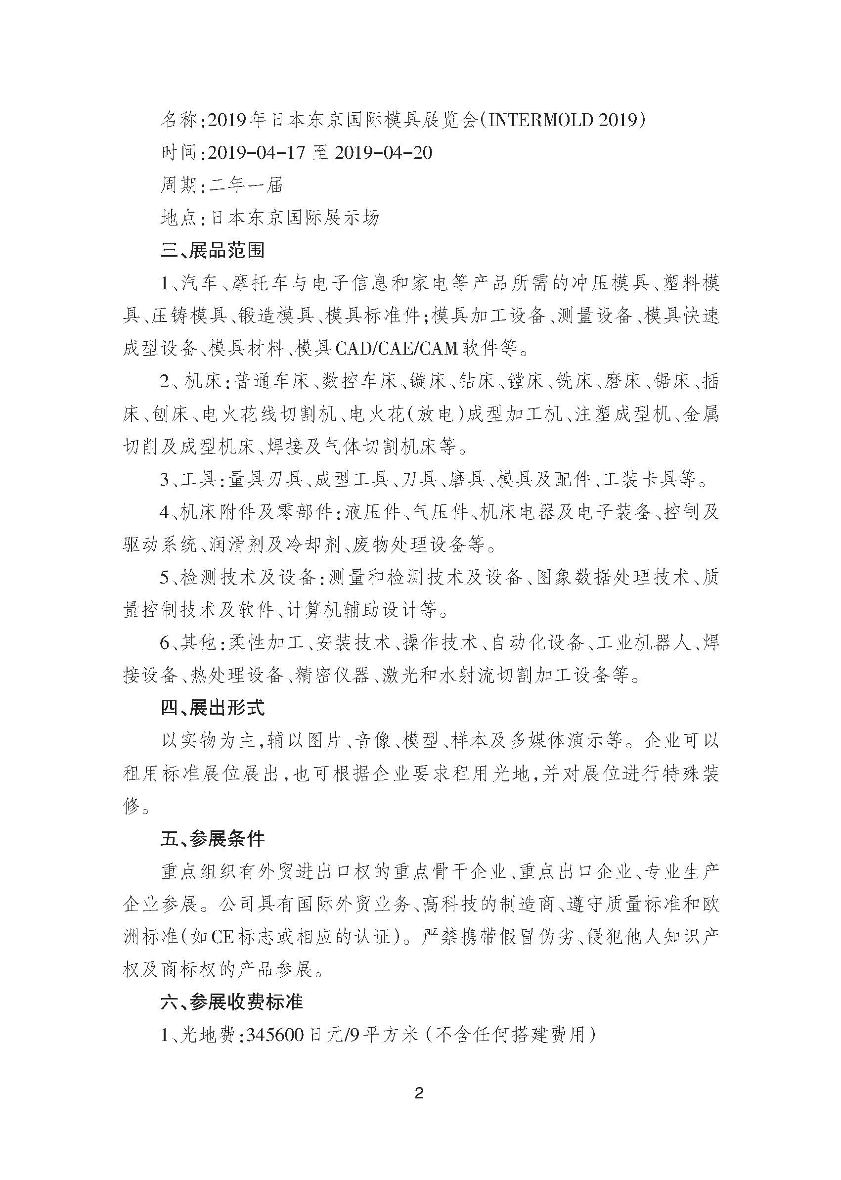 關(guān)于邀請參加2019 年日本東京國際模具展覽會(huì )的通知