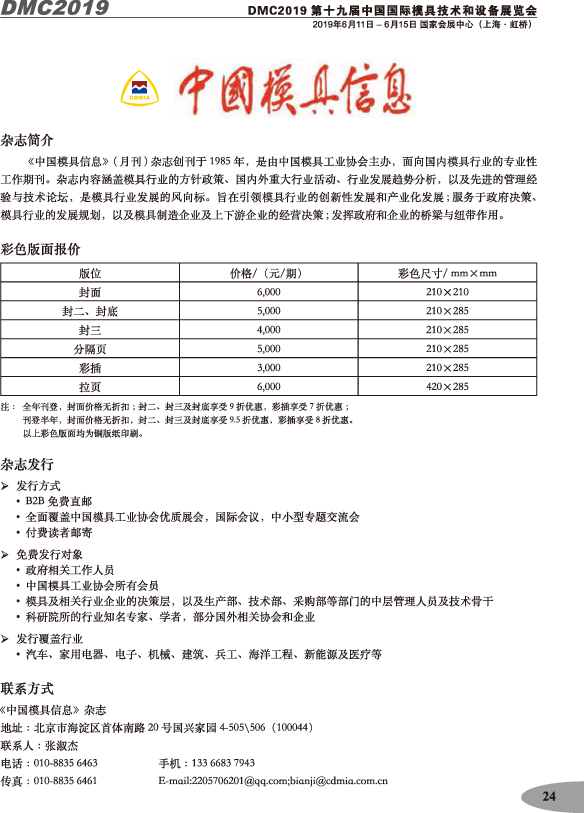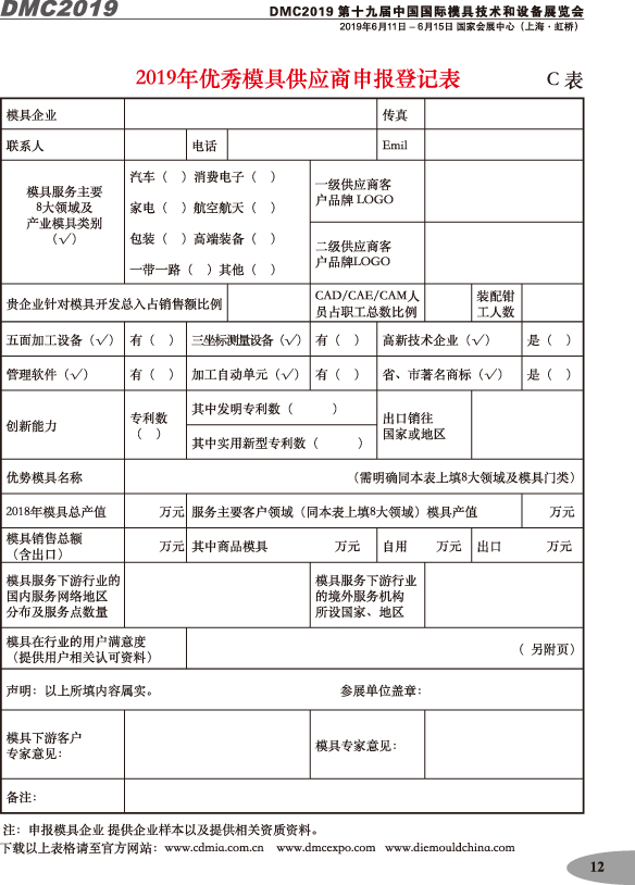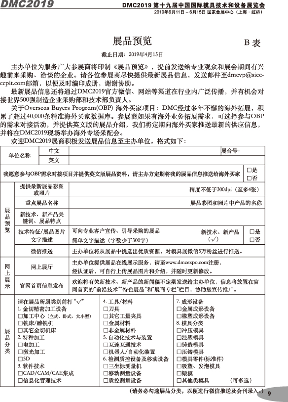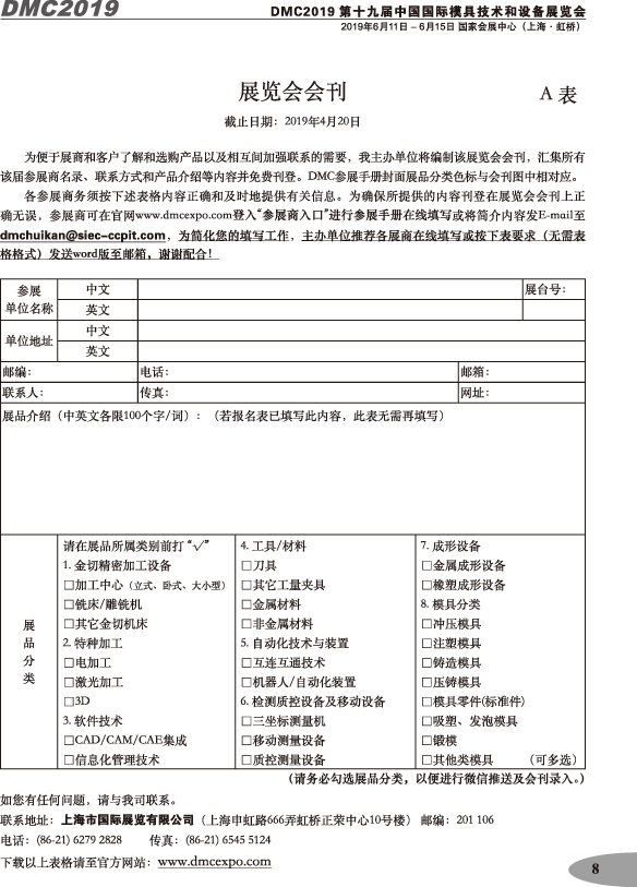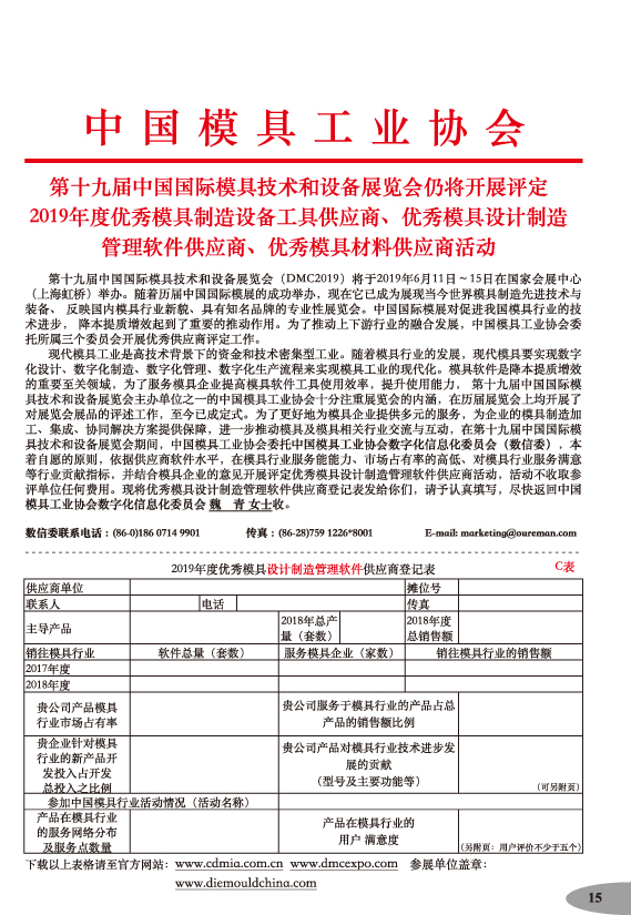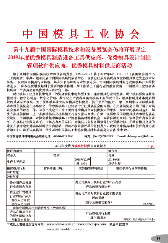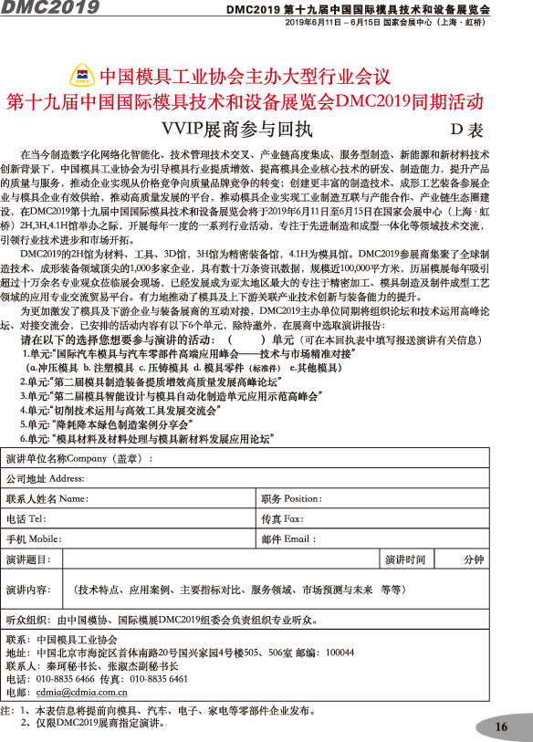 第十九屆中國國際模具技術(shù)和設備展覽會(huì )參展手冊