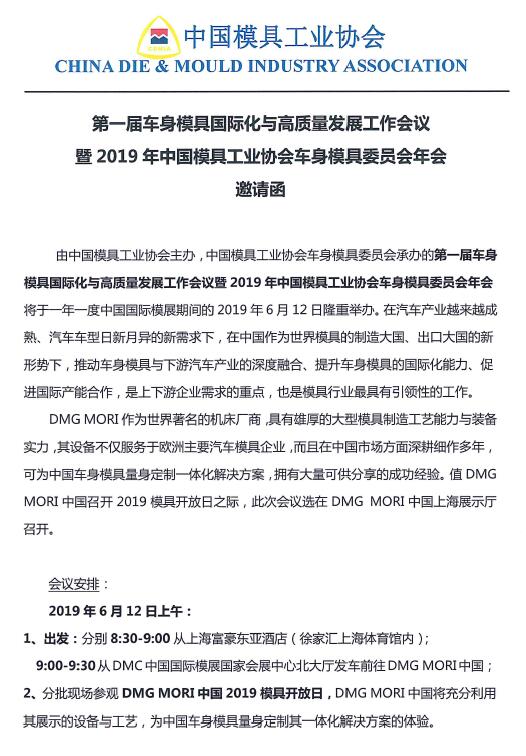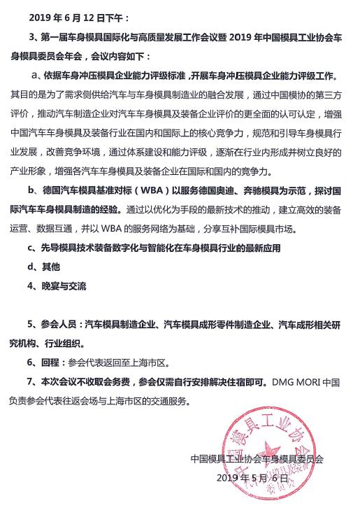 第一屆車(chē)身模具國際化與高質(zhì)量發(fā)展工作會(huì )議暨2019年中國模協(xié)車(chē)身模具委員會(huì )年會(huì )邀請函