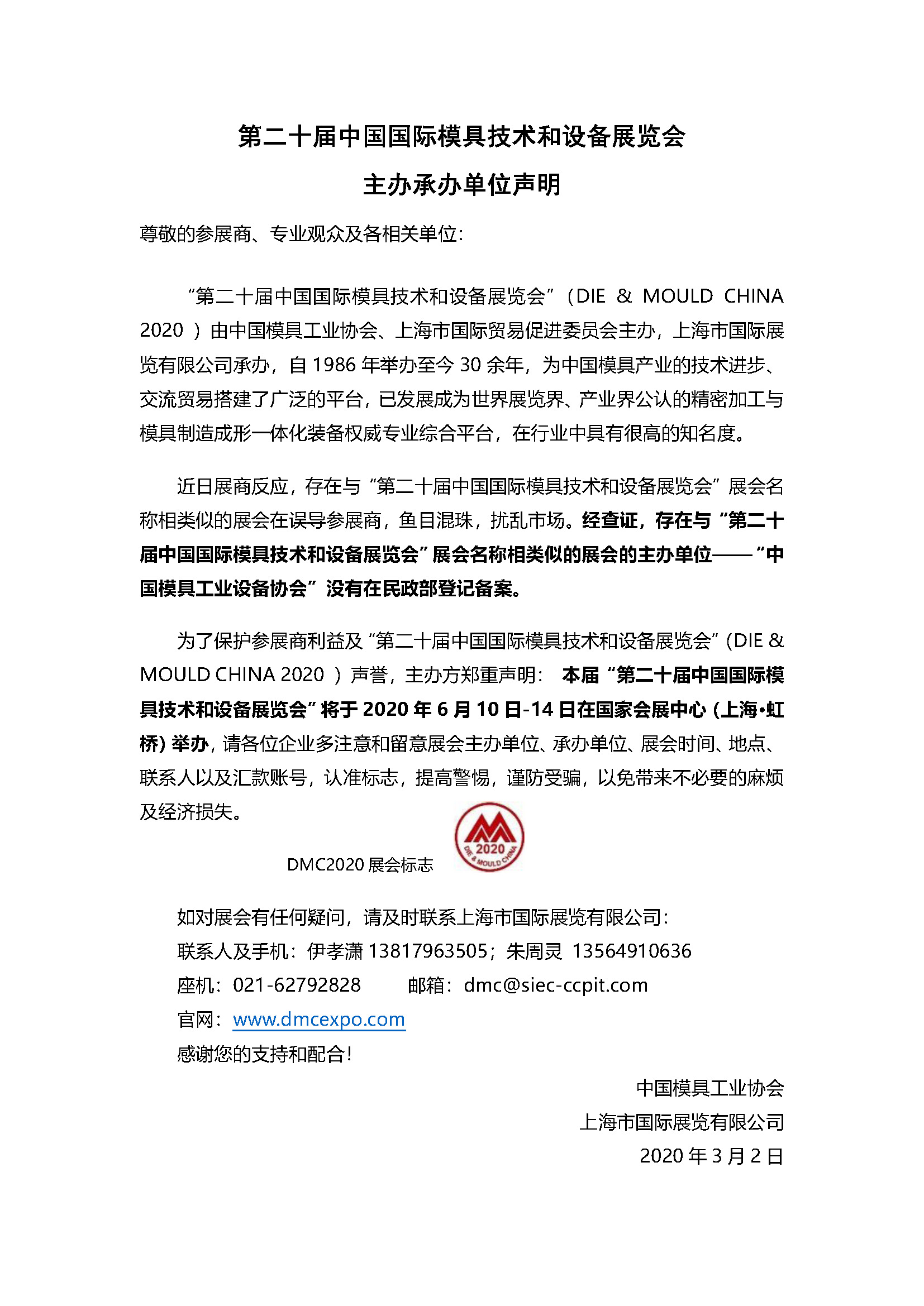 第二十屆中國國際模具技術(shù)和設備展覽會(huì )主辦承辦單位聲明