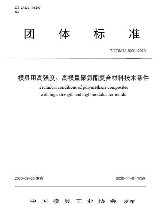 中國模協(xié)標準B001-模具用高強度、高模量聚氨酯復合材料技術(shù)條件-2020