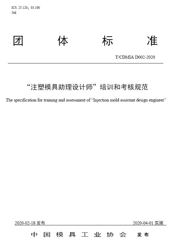 中國模協(xié)標準D002-注塑模具助理設計師”培訓和考核規范-2020