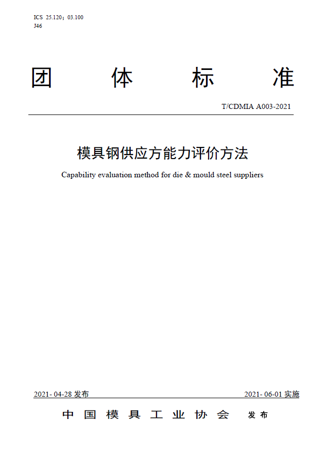 中國模協(xié)標準A003-模具鋼供應方能力評價(jià)方法-2021