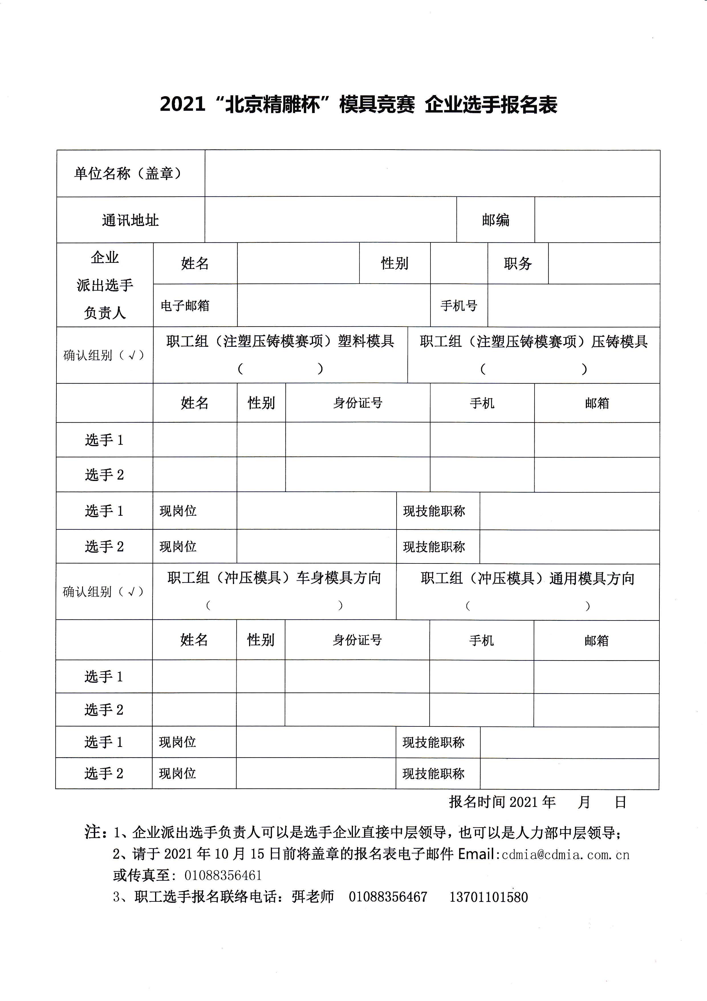 2021年人社部全國行業(yè)職業(yè)技能競賽——第十九屆全國機械行業(yè)職業(yè)技能競賽(“北京精雕杯”模具競賽)報名通知
