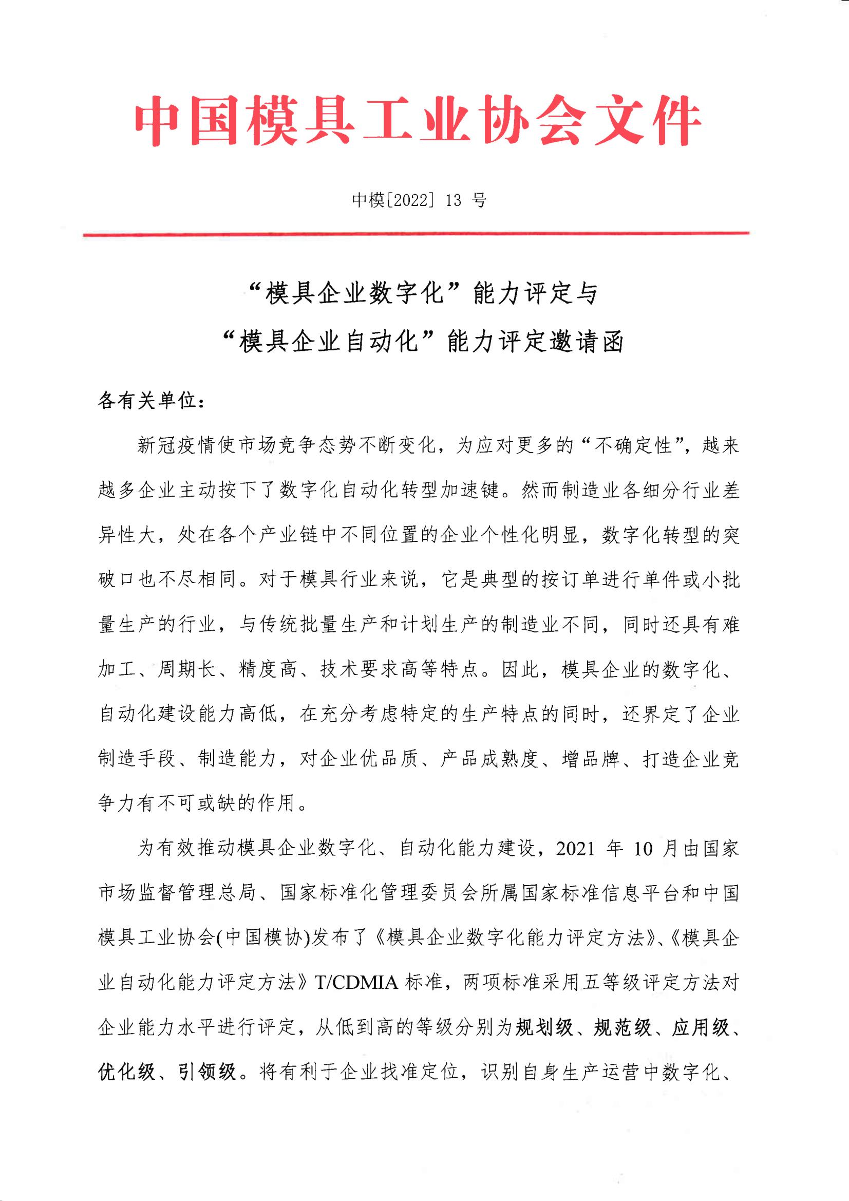“模具企業(yè)數字化”能力評定與“模具企業(yè)自動(dòng)化”能力評定邀請函