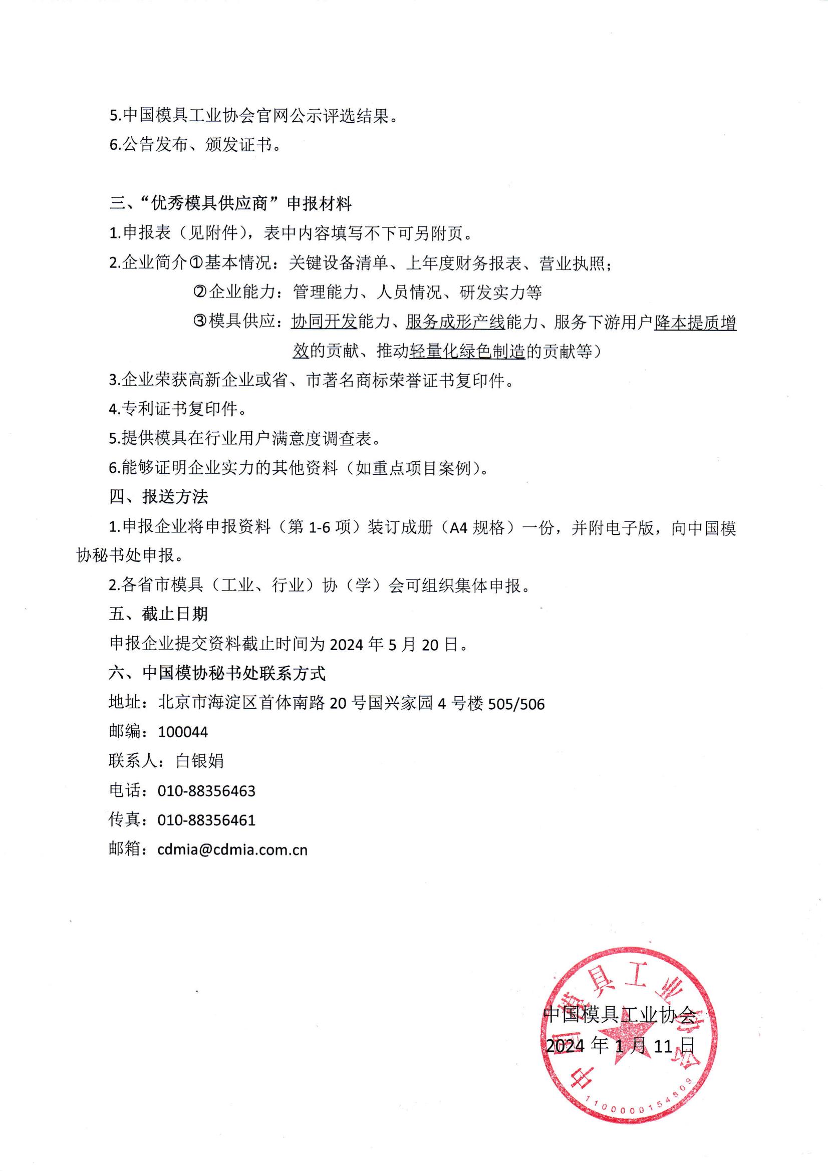 2024年度“優(yōu)秀模具供應商”評選活動(dòng)的通知