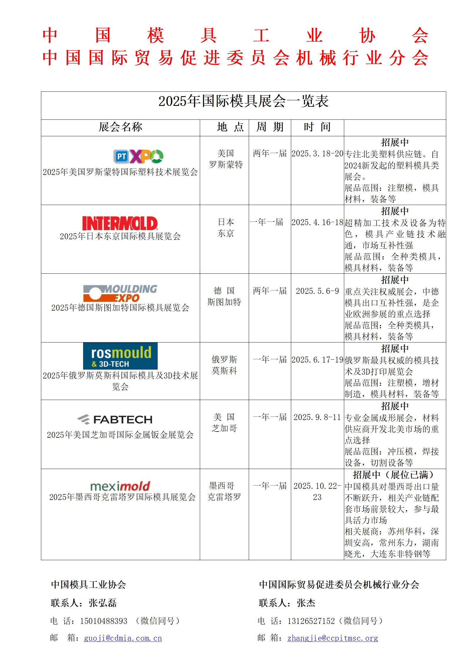 2025年國際模具展會(huì )一覽表