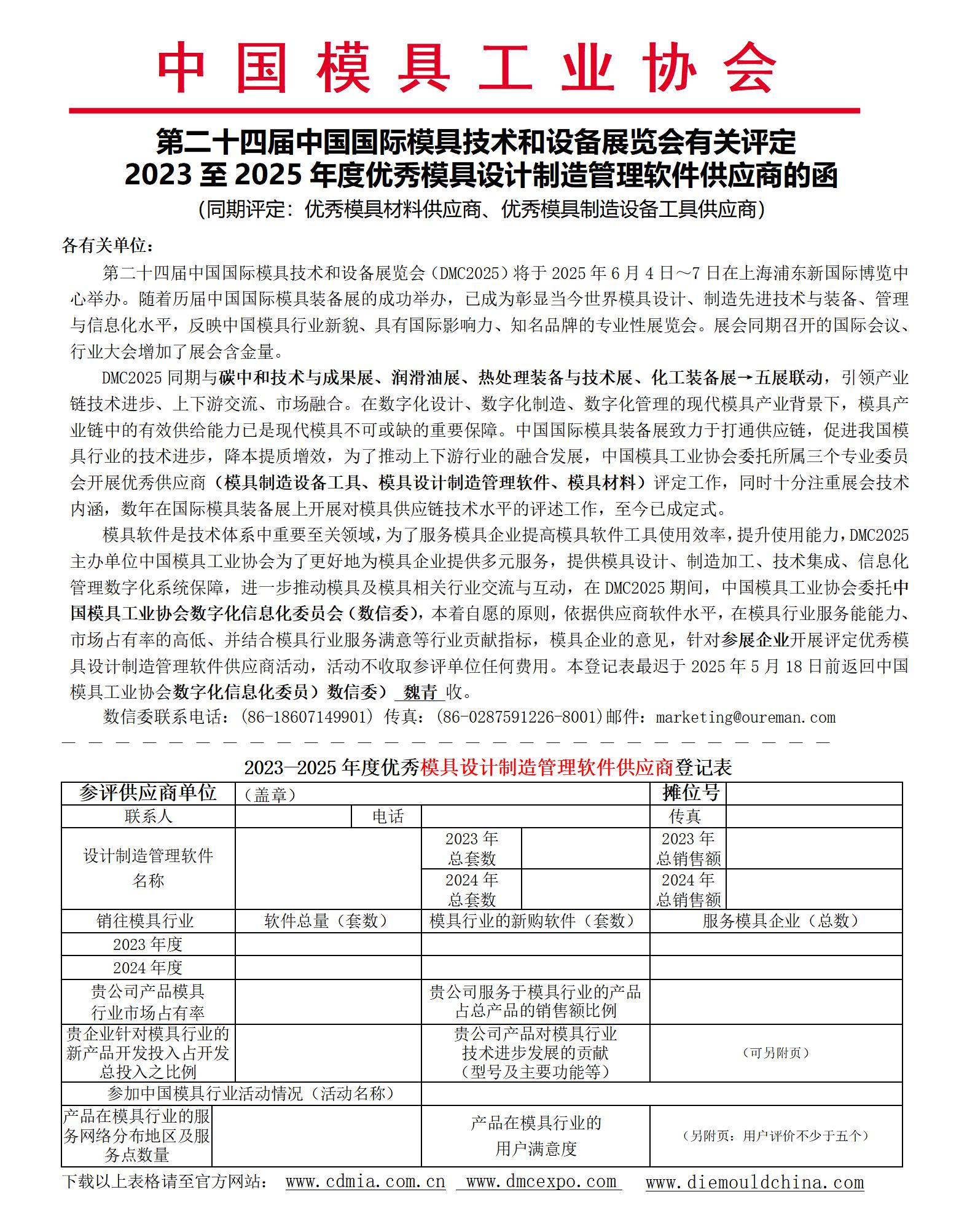 2023至 2025年度優(yōu)秀模具設計制造管理軟件供應商的函